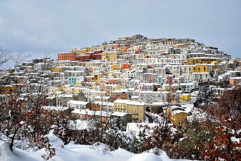 Calitri伫立于美丽的Campania山岗上。整个小镇想被古老的房屋围成的迷宫,尤其在雪后的小镇,行驶在鹅暖石铺筑的道路上会非常地有趣。