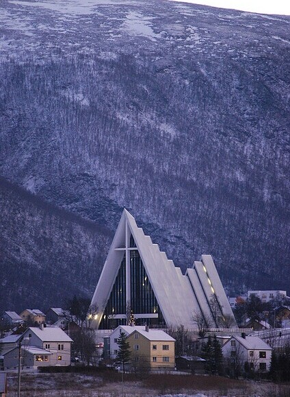 今年到挪威位于北极圈内的北部城市Tromso采访时参观了北极大教堂(Arctic cathedral),与中欧传统的哥特式教堂完全不同,这座建于1965年的风雪教堂形状灵感来自挪威的冰山,拥有北欧最大的彩色玻璃窗。如果在这里求婚恰好遇到窗外的极光,那画面你自己想。
